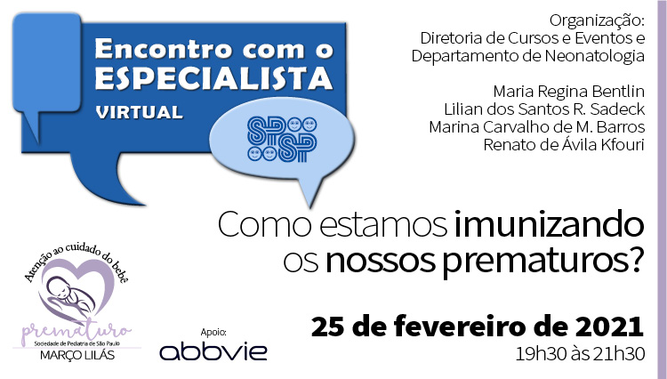 Objetivo: Atualização dos Pediatras e Neonatologistas em relação à vacinação nesse período de pandemia e salientar a importância de manter um esquema vacinal em dia, incluindo a prevenção da infecção pelo vírus sincicial respiratório.